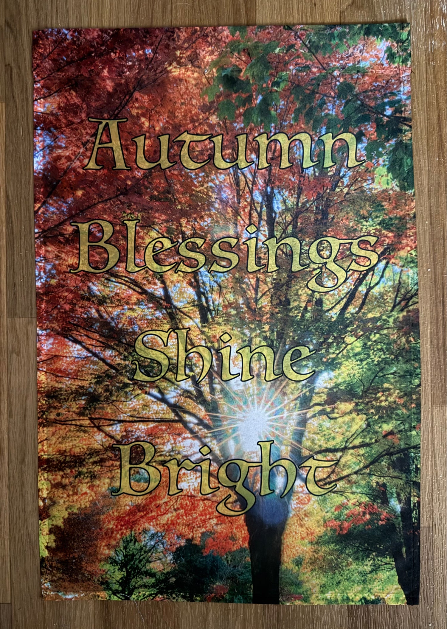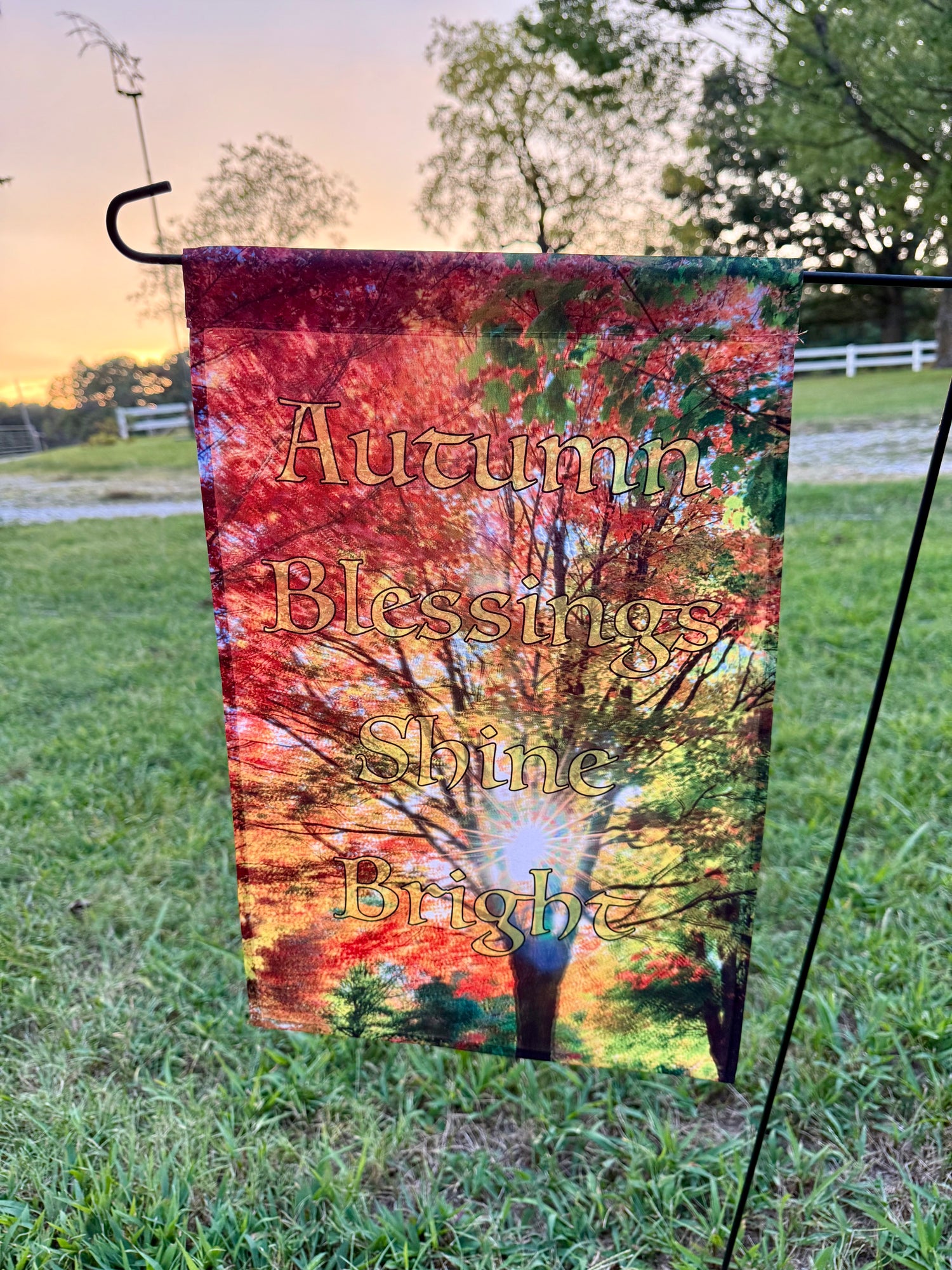 Capture the beauty of fall in your garden with our Autumn Blessings Shine Bright Garden Flag. Measuring 12x18 inches, this flag features a stunning sunburst design through a tree, perfect for adding a touch of warmth and nature to your outdoor space. Bring in the season with style and charm.