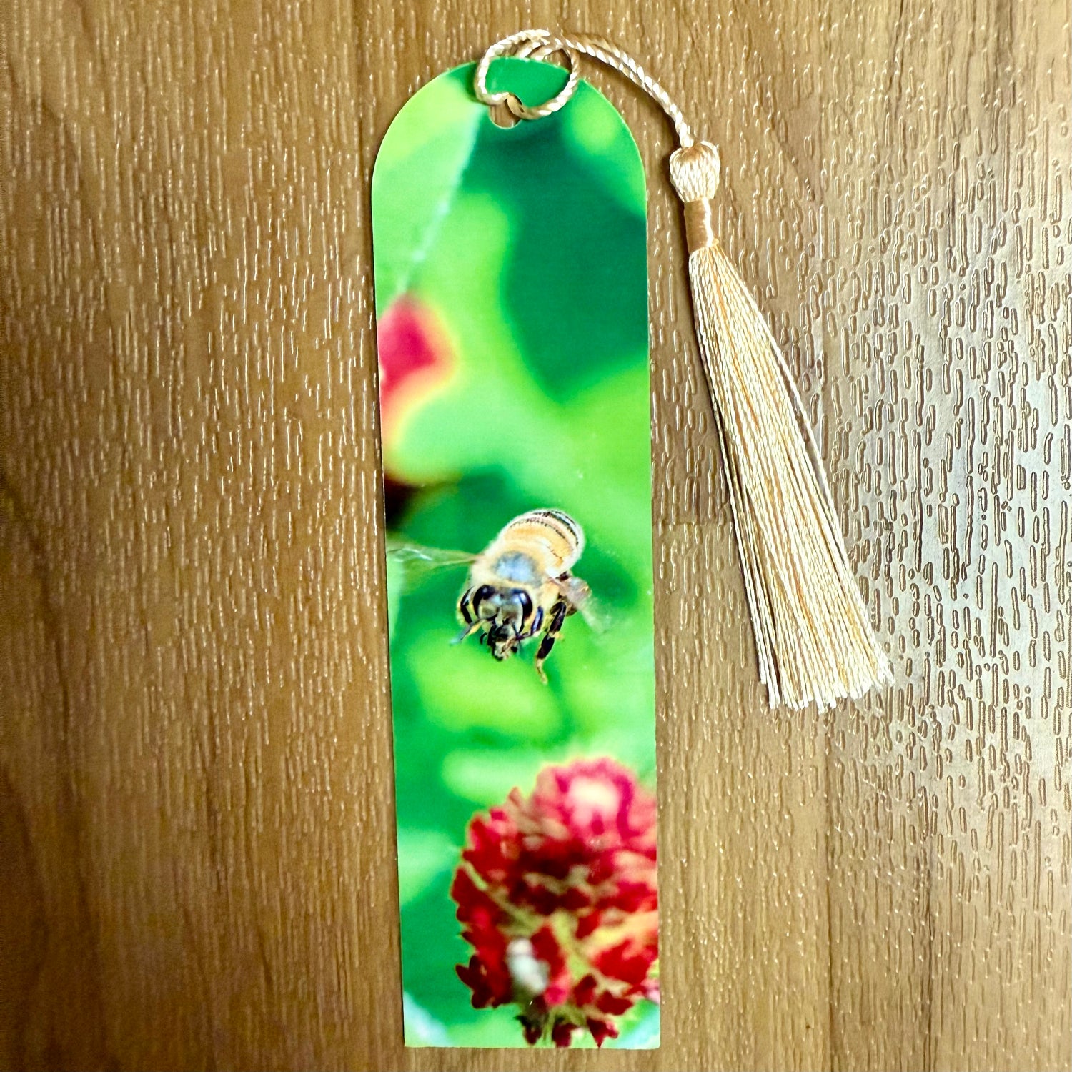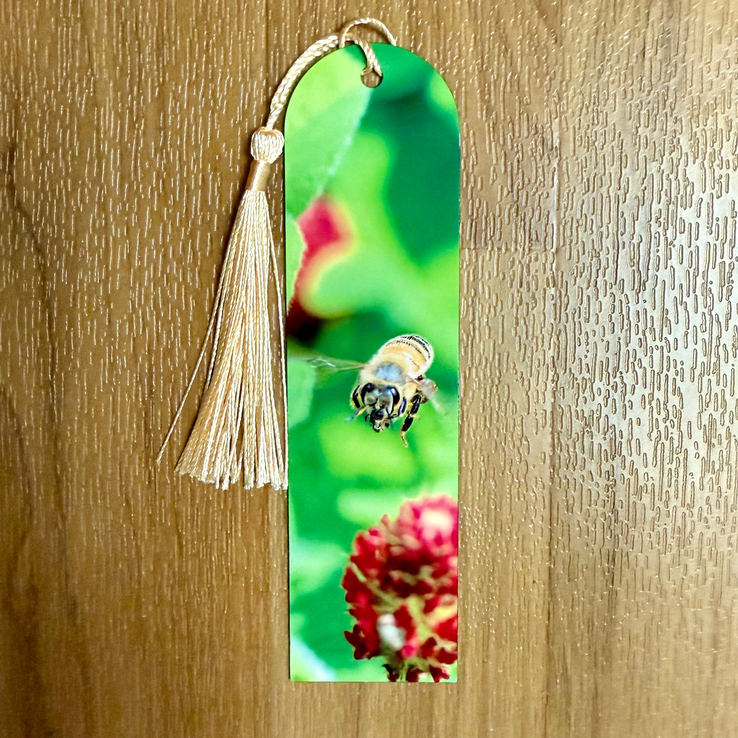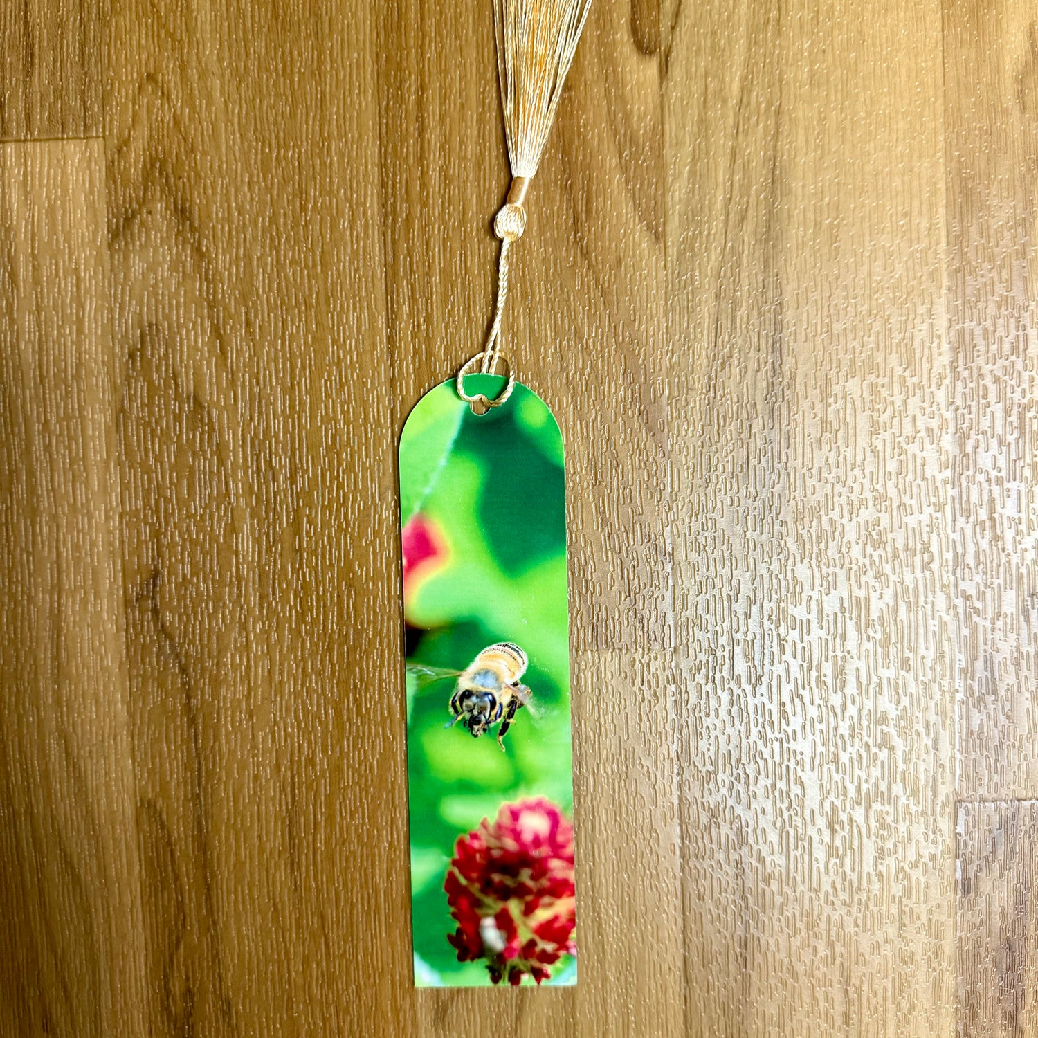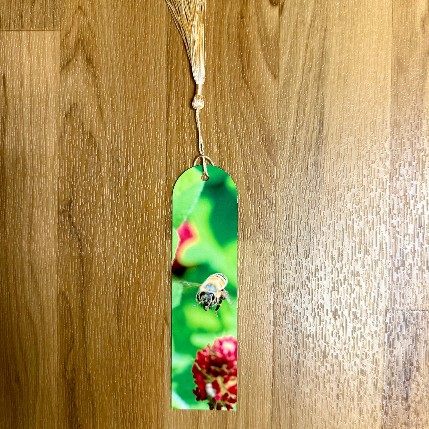 This elegant Bee Flying in Clover Metal Bookmark measures 5.8"x1.6" and is the perfect accessory for any book lover. Crafted with precision and featuring a charming design, this bookmark not only keeps your place in a book but also adds a touch of sophistication. Make reading even more delightful with this unique bookmark.