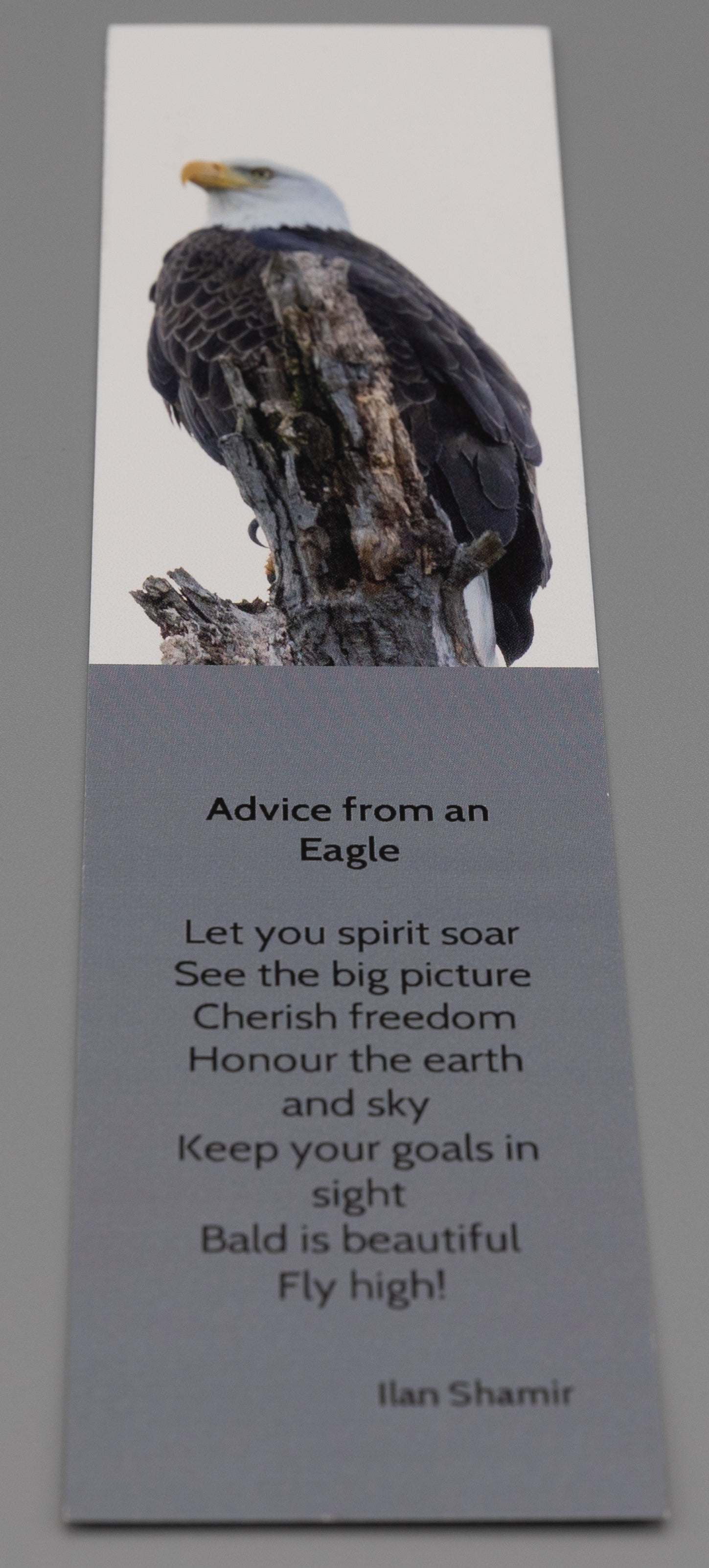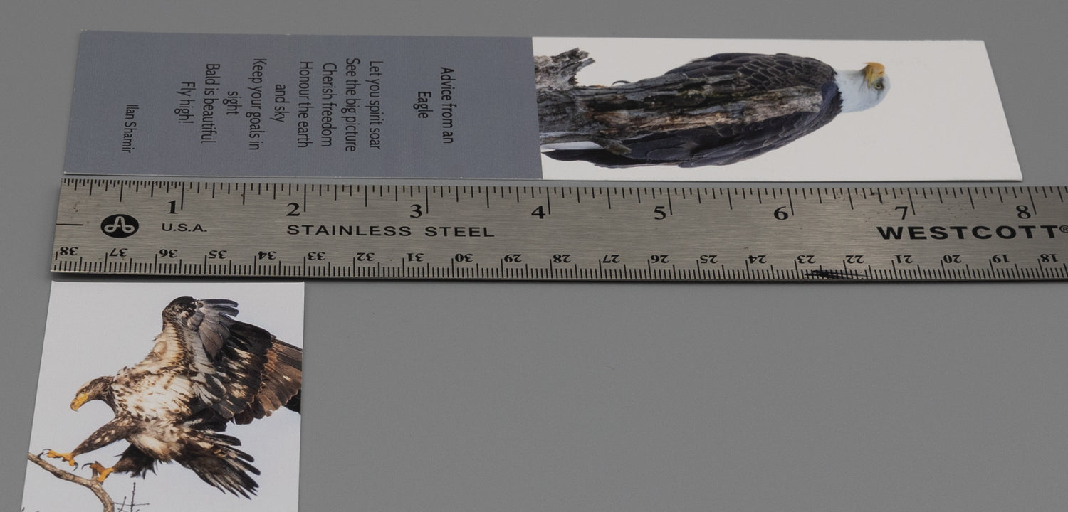 This 8"x2" bookmark is printed on thick, semi-gloss paper, giving it a vibrant look that's sure to take your reading experience to the next level. Enjoy the beauty of bald eagles with this inspirational reminder of wisdom that'll help you soar to success.