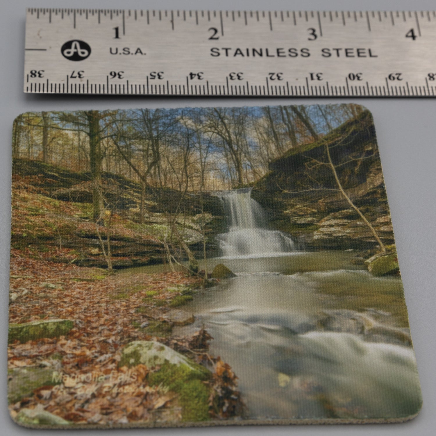 Our Coaster Magnolia Falls features a rubber base and a winter-inspired square design. At 3.5" x 3.5" x .125", it's the perfect coaster for any occasion. Get 25% off when you purchase any 4 coasters. Enjoy the beauty of Magnolia Falls all year round!