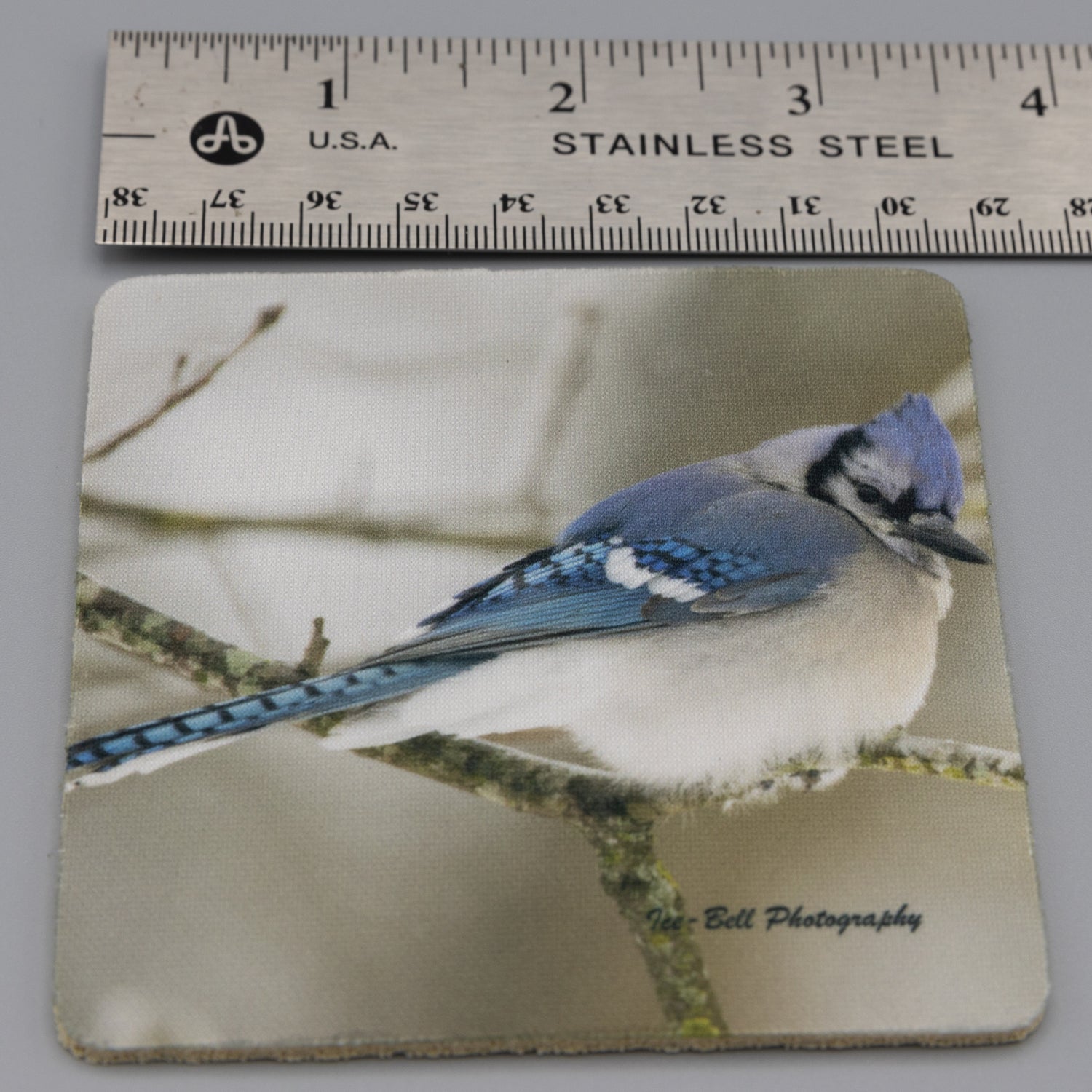 The Coaster Blue Jay provides protection from spills with its rubber base that grips surfaces. Its square shape is 3.5" x 3.5" x .125", ideal for small containers. Enjoy the outdoor beauty of a snowy day in Arkansas with the photo printed on the face of the coaster.