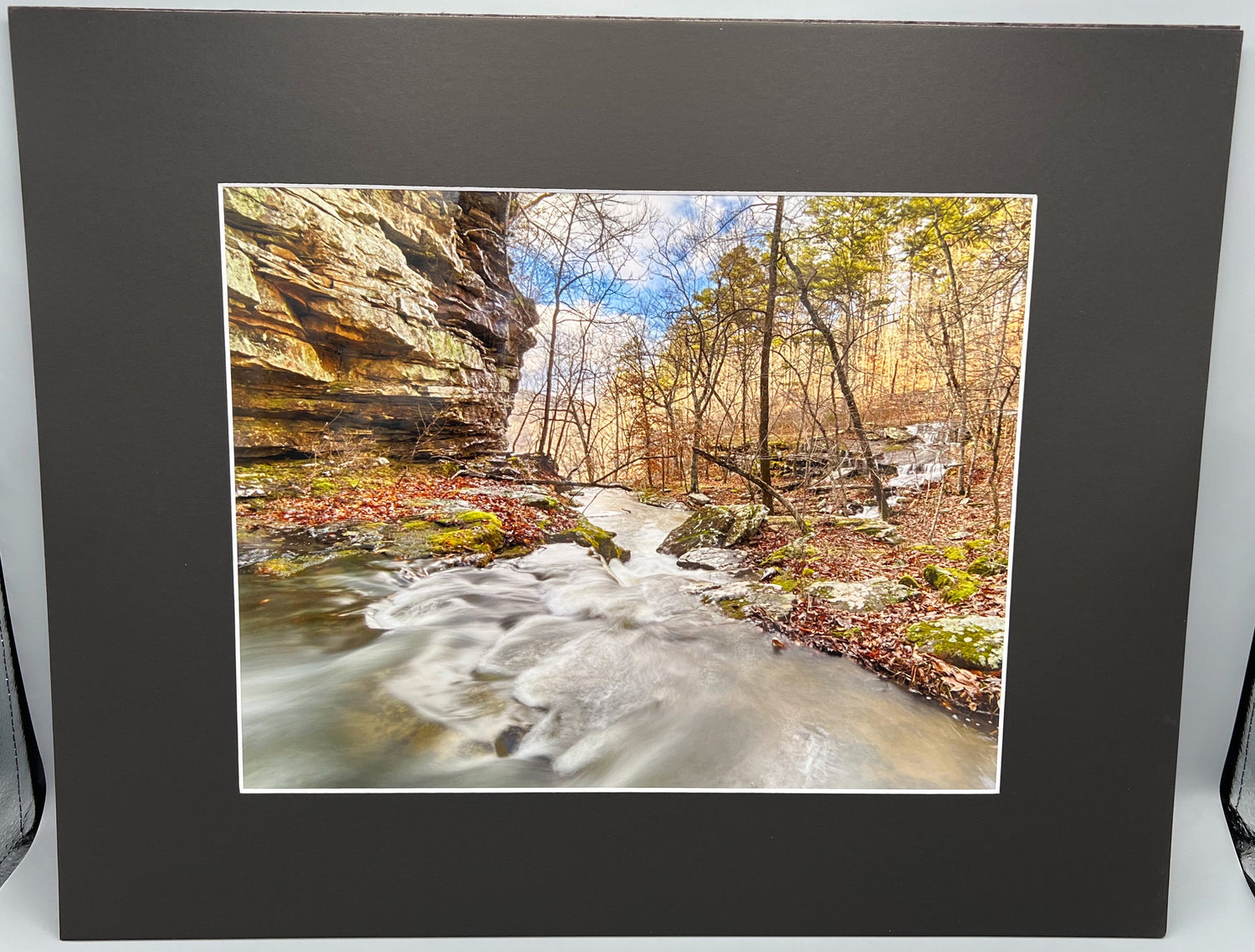 Our Flow Below Magnolia Falls Matted Print is a striking addition to any wall. The matted print is perfect for adding a touch of nature to any room. Capturing the beauty of Magnolia Falls, this is a picture that will draw attention.