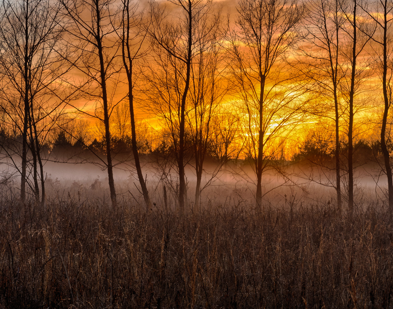 Low lying fog was filling the valley's after the rain cleared out. Leaving work noticed the sky was as though it was on fire with the little remaining clouds and looked on down the road and saw the fog but not thick and only in some places. This image was shot in Lead Hill, AR.