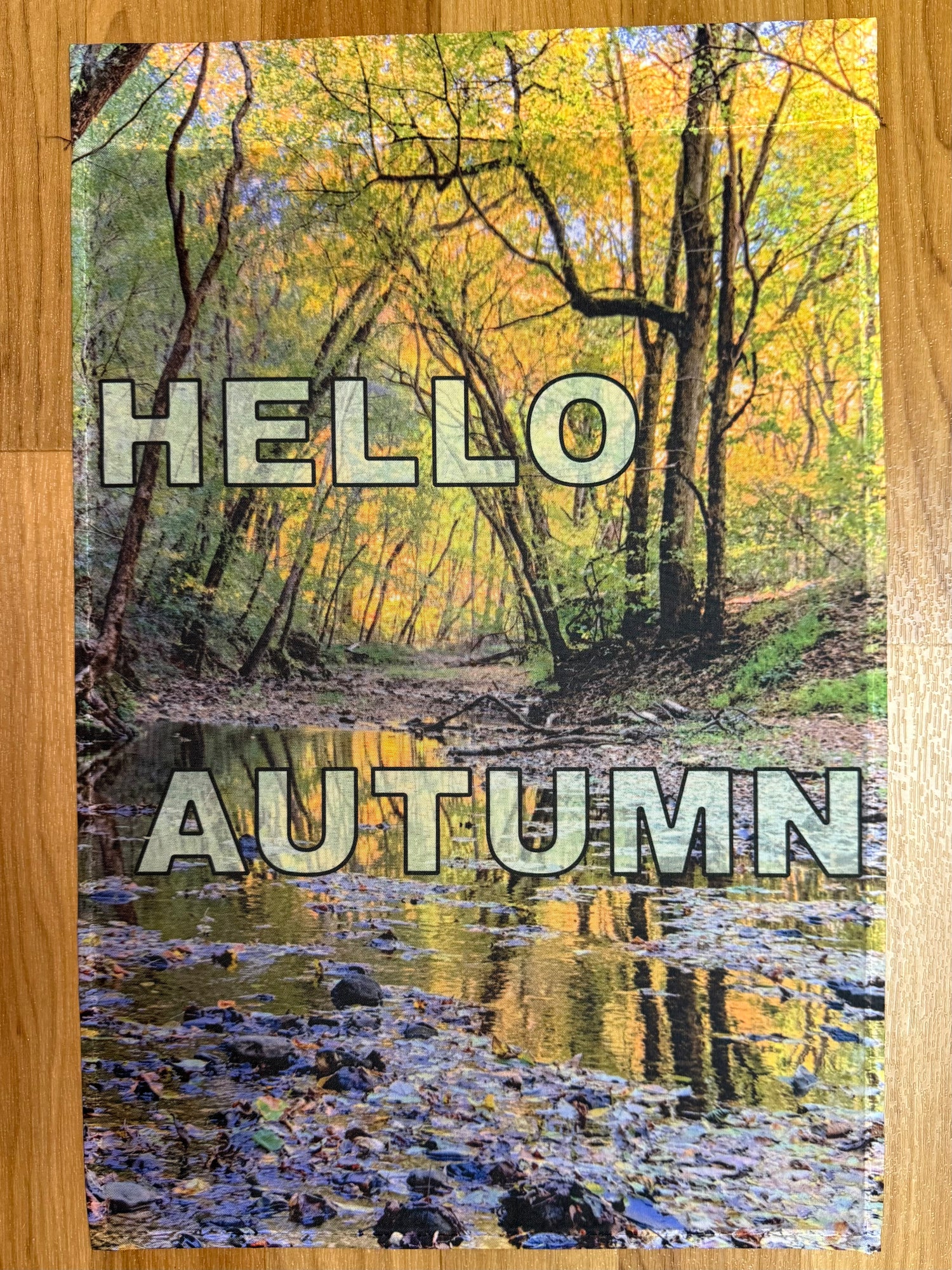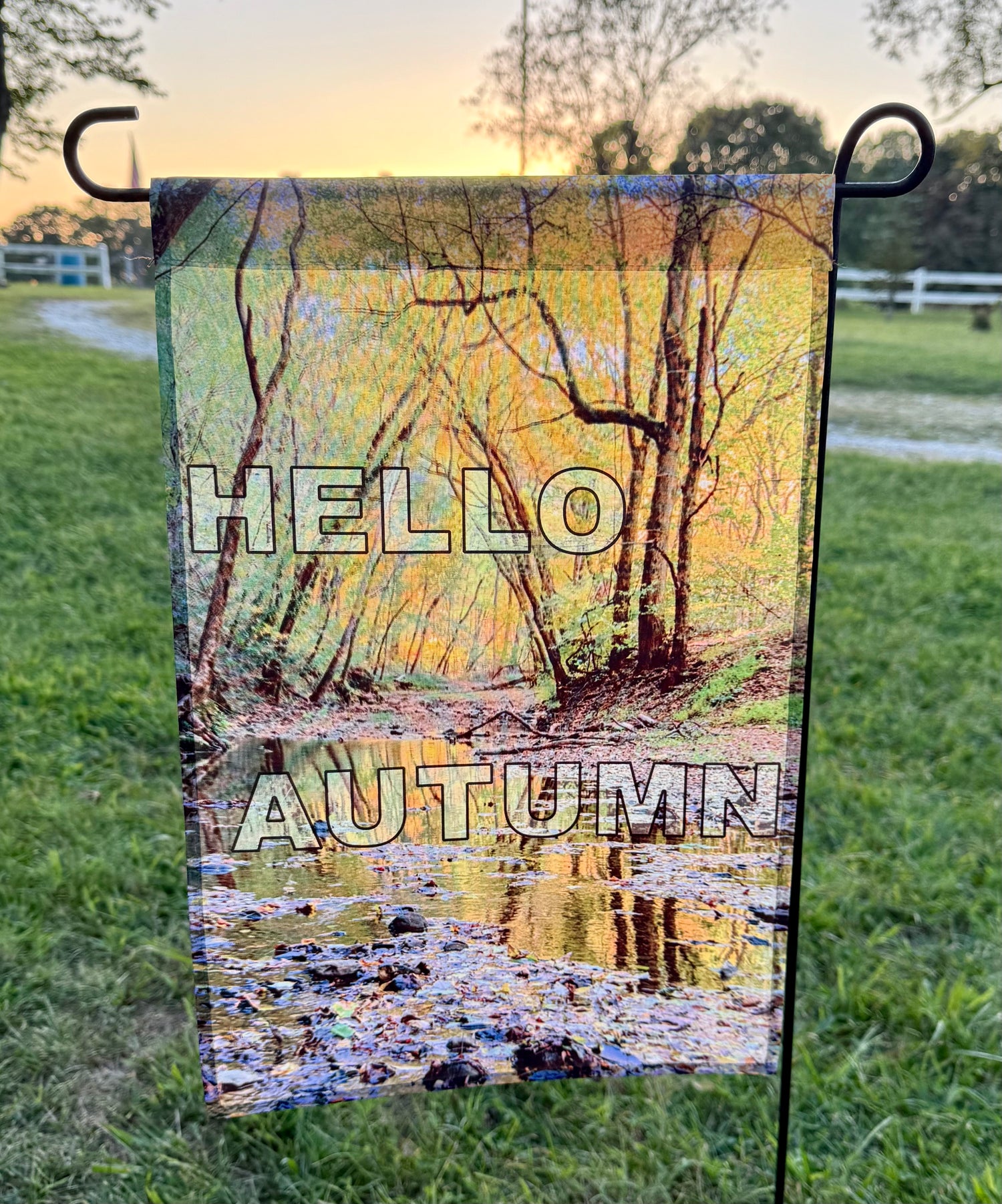 Introducing the Hello Autumn Garden Flag, perfect for adding a touch of seasonal charm to your outdoor space. Measuring 12x18 inches, this durable flag features the beautiful Steel Creek as it heads to the Buffalo National River. Made for autumn lovers and garden enthusiasts, it's a must-have addition to any garden or yard.