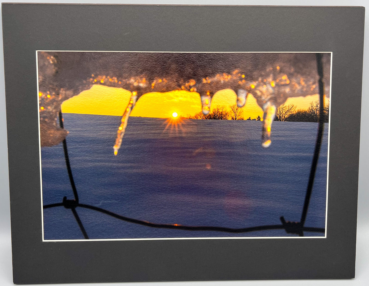 This 11x14 Icy Sunset Matted Print is a beautiful piece of art, perfect for brightening up any space. Its high-quality paper brings the colors of a beautiful icy sunset to life, creating an eye-catching reminder of nature's beauty.