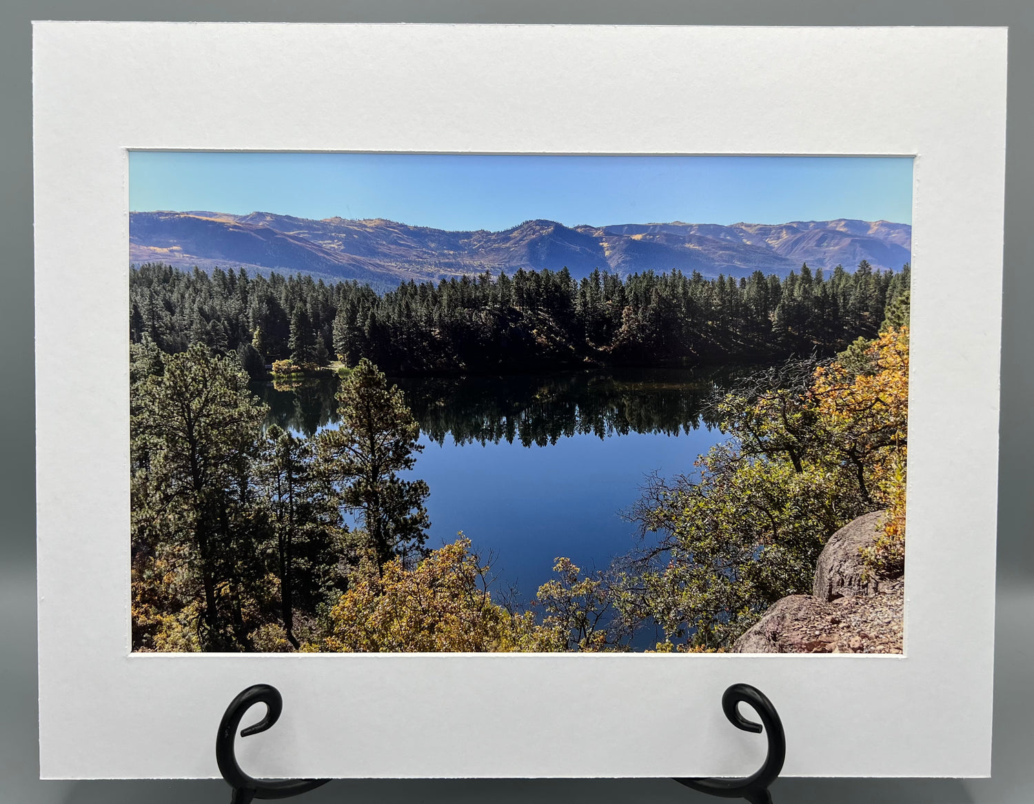 Enjoy a breathtaking view of Colorado with this matted print of a lakeside landscape. Featuring a lake surrounded by mountains in fall, its rich colors and detail are sure to make it a lasting addition to any living space.