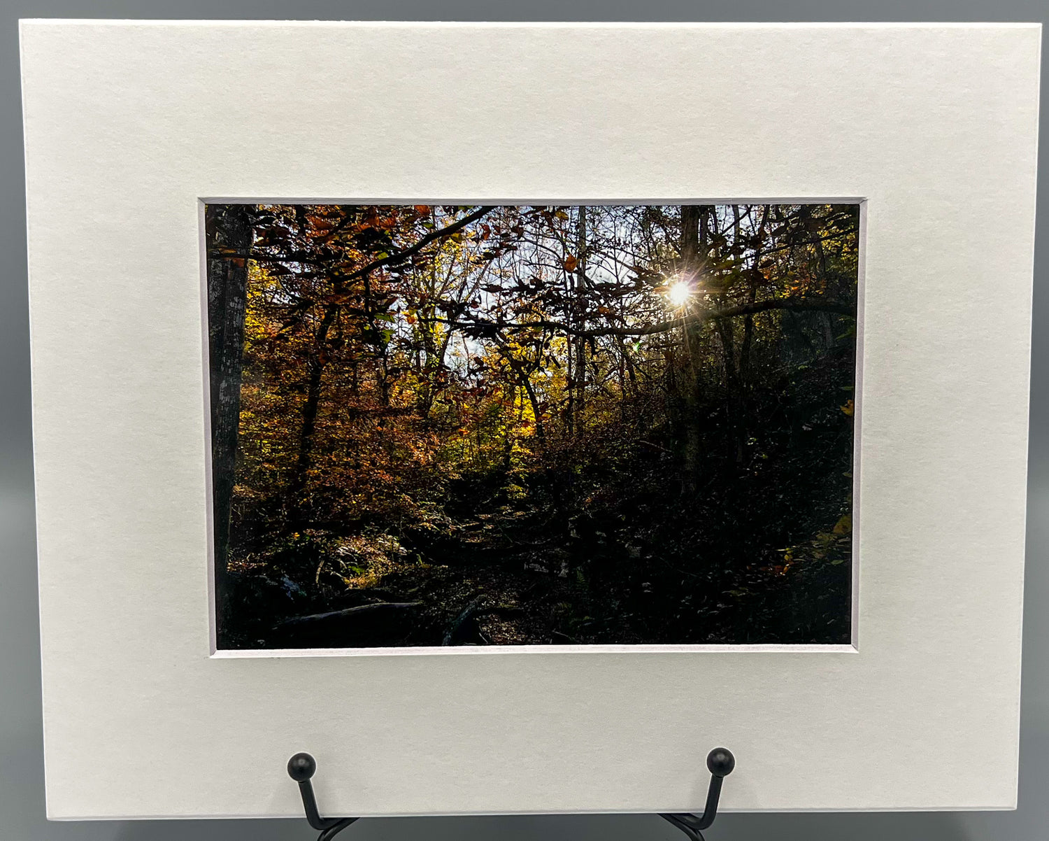 Lighting it Up is a matted print featuring a stunning sunburst surrounded by trees in Alum cove. This durable piece of art is sure to light up any room and decorate a wall with a beautiful and timeless design.