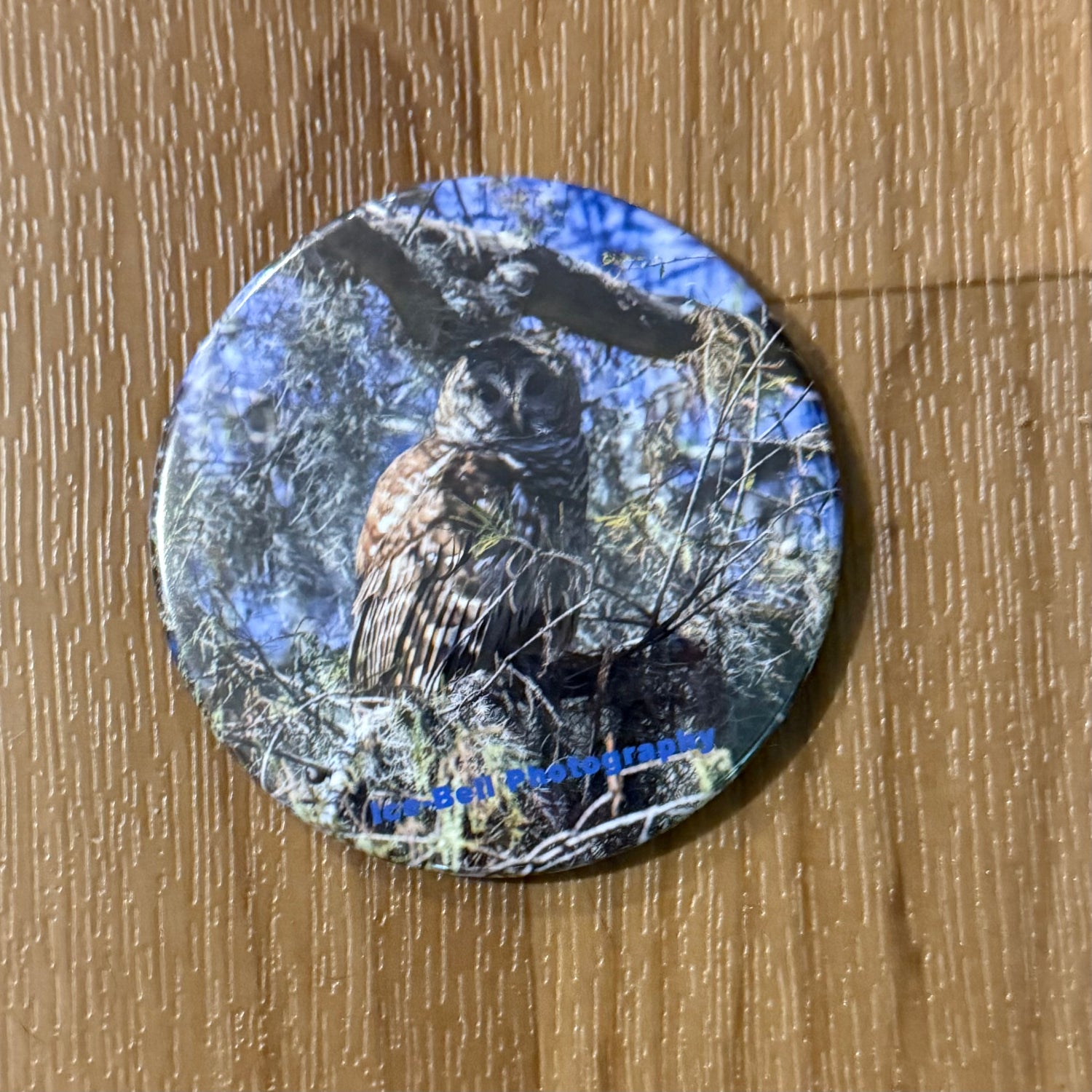 This 3" round photography magnet of a beautiful barred owl is a great way to add a touch of nature to any magnetic surface! The high-quality photo captures the intricate details of the bird, producing a stunning result.