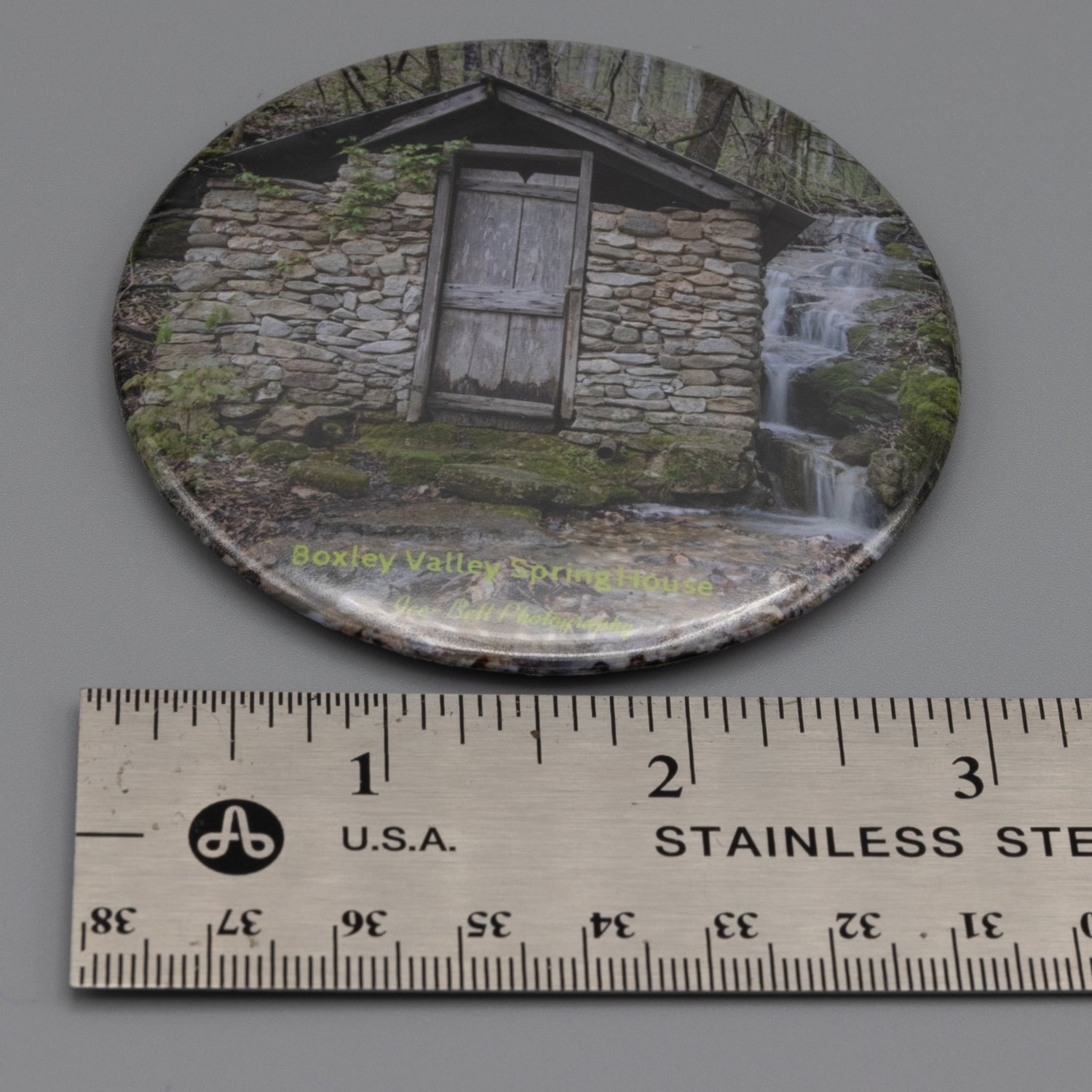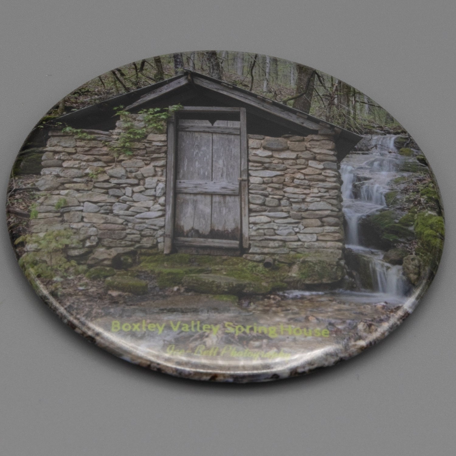 Our 3” round magnet is the perfect way to bring the beauty of Boxley Valley Spring House into your home. It's made from high-quality photography and ready to adorn any magnetic surface in your home or office.