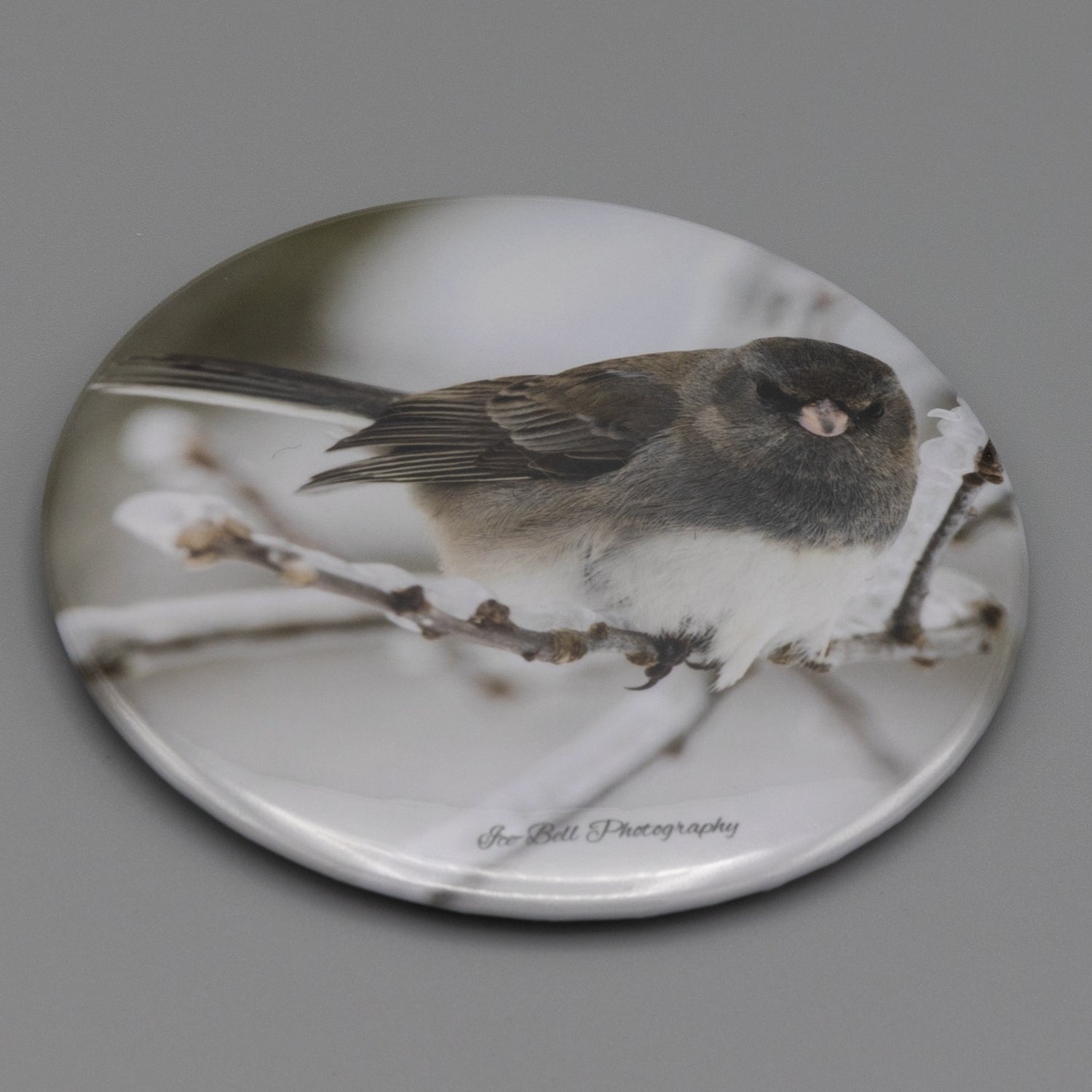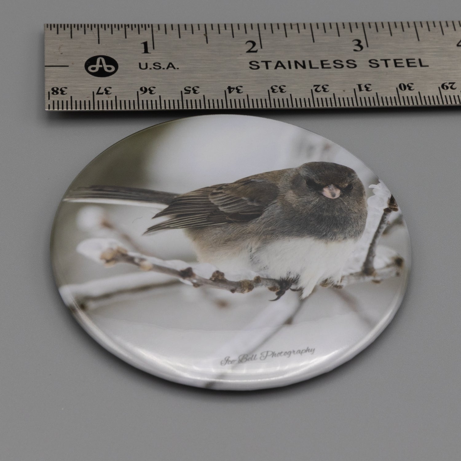 Adorn any magnetic surface with this beautiful 3" round photography magnet featuring the Dark-eyed Junco. Durable and easy to use, this custom magnet is a perfect gift for any nature lover.