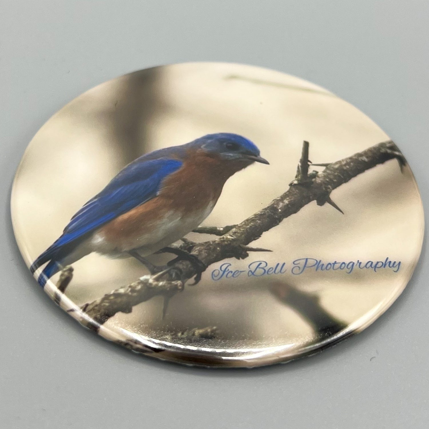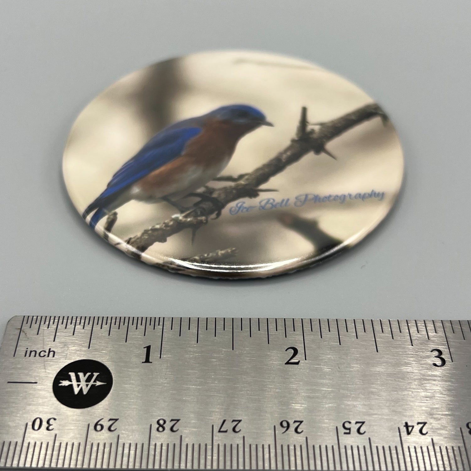 This 3" round photography magnet of a beautiful blue bird is a great way to add a touch of nature to any magnetic surface! The high-quality photo captures the intricate details of the bird, producing a stunning result.