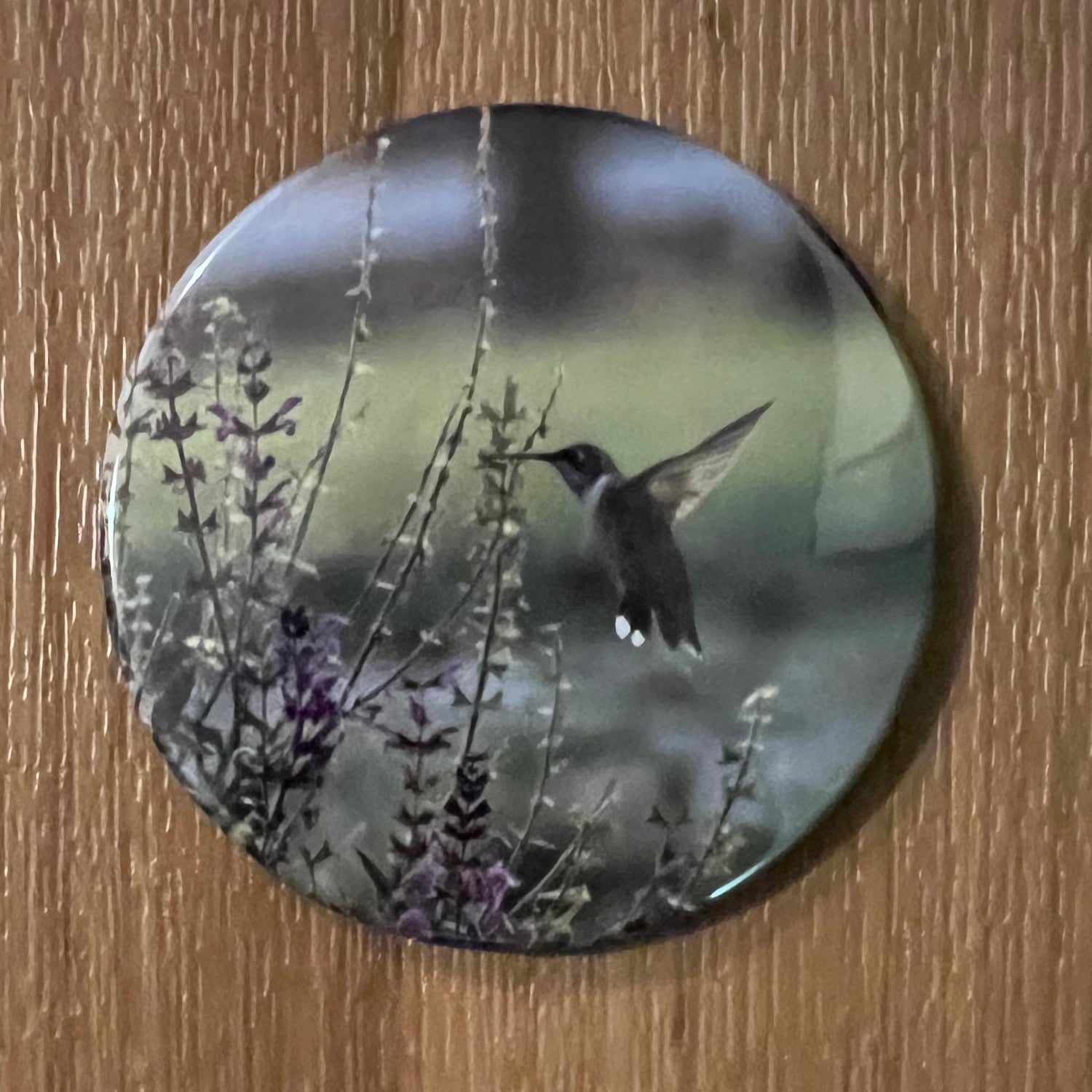 Add a touch of nature to your fridge, locker, or any magnetic surface with this 3" round magnet featuring a beautiful hummingbird. Strong and durable, it will stay in place without slipping or sliding. A must-have for any hummingbird lover.
