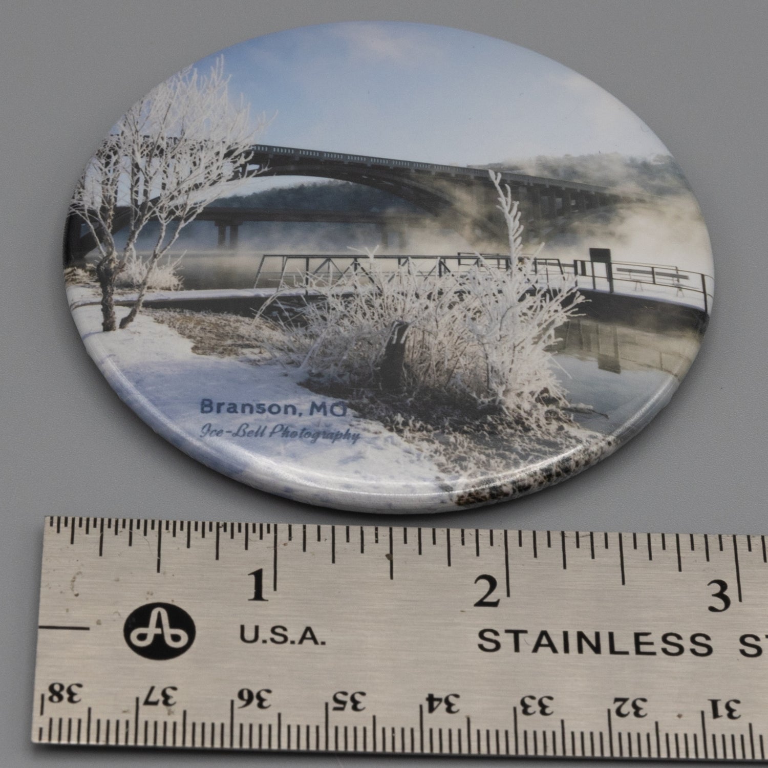 This 3" photography magnet features beautiful winter scenery of Lake Taneycomo in Branson, Missouri. It's perfect to place on any magnetic surface and enjoy the peaceful ambience of winter.