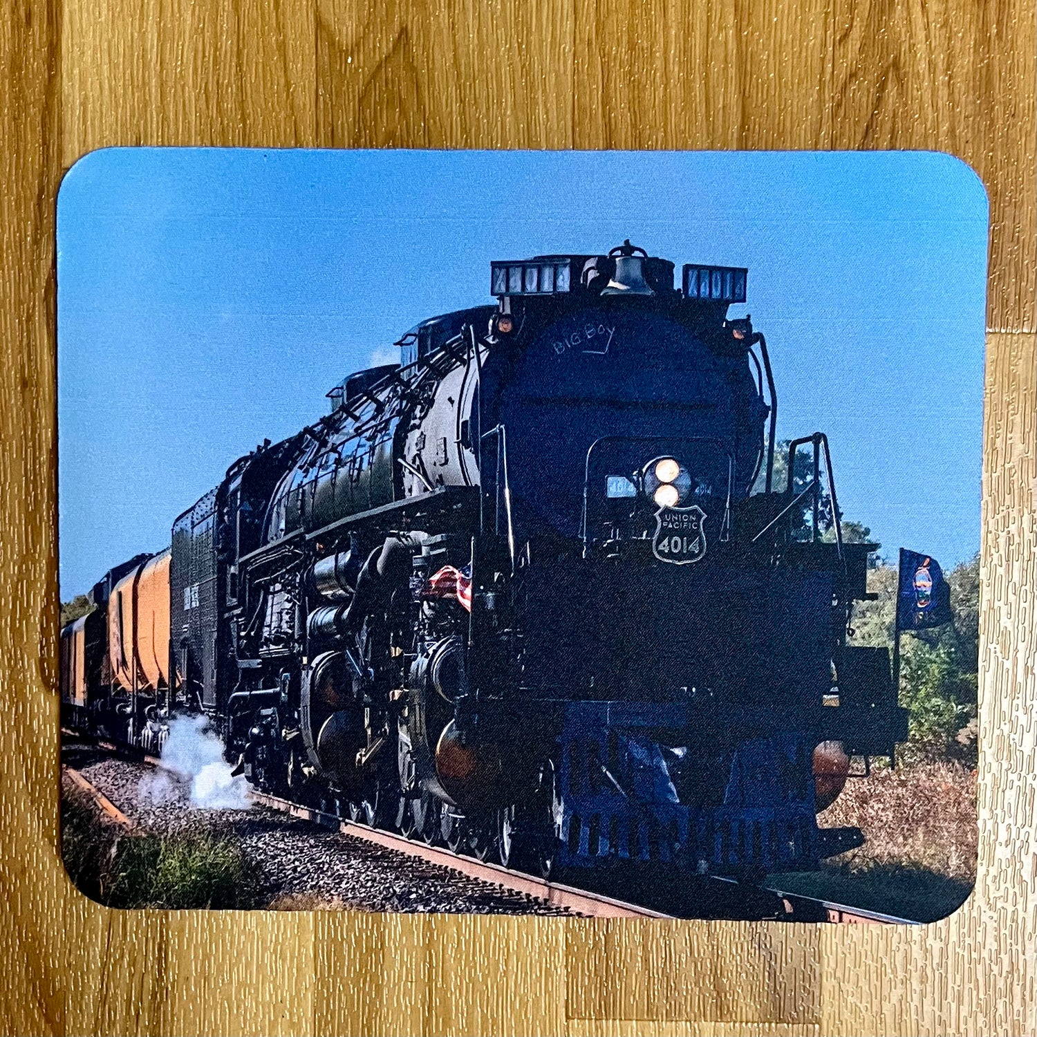 This Mouse Pad is crafted with premium neoprene and has dimensions of 7.87"x 9.45"x0.18". Each pad is uniquely designed with photos taken by Heather and David. This mouse pad is of the Big Boy 4014 crossing 900 Rd in Wilson County, KS during the 2024 Heartland of America Tour.