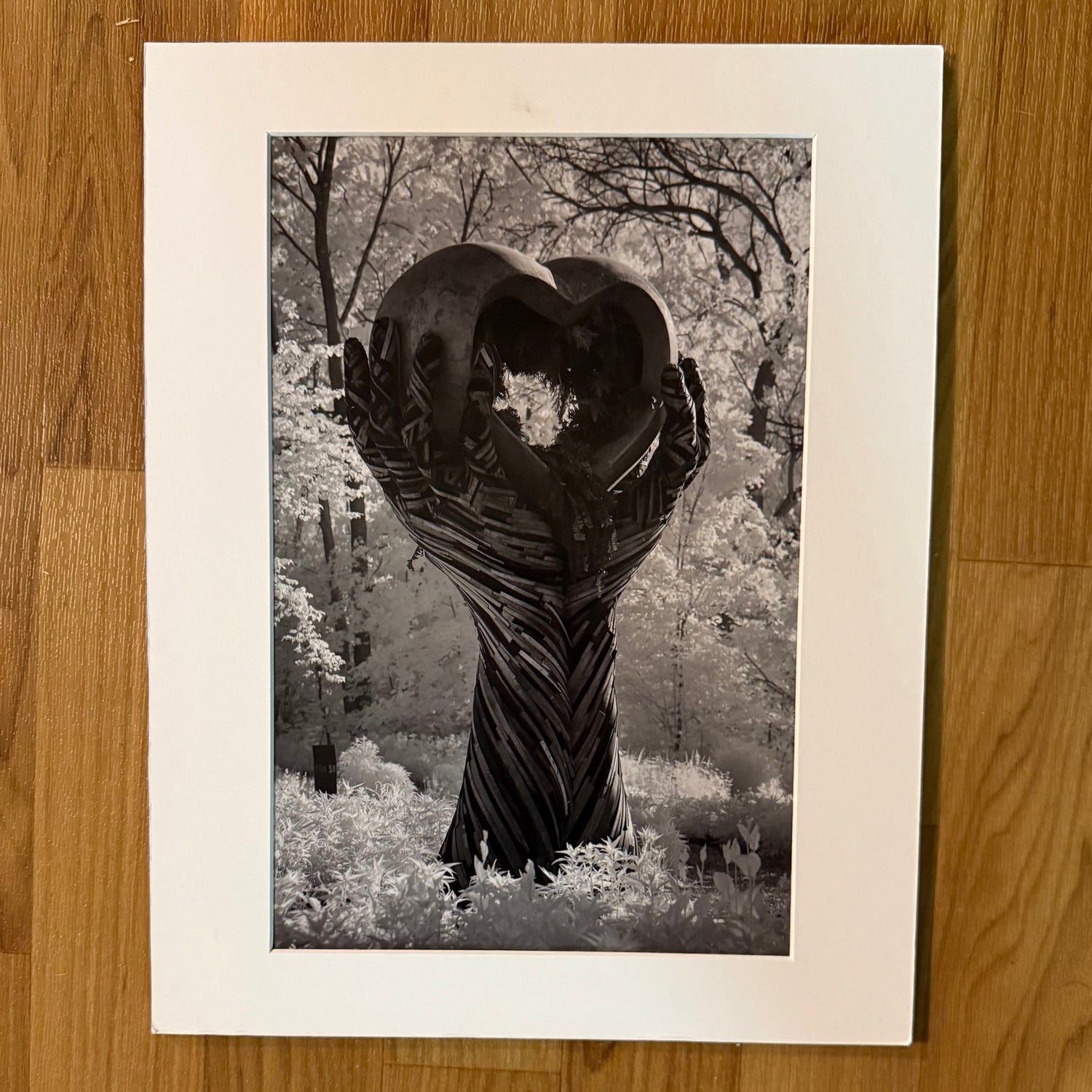 This IR matted print features a stunning infrared photograph capturing the beauty of "Open Heart" in Compton Gardens Bentonville, AR. With expertly captured details and unique lighting, this print is a must-have for any art enthusiast. Bring the beauty of nature into your home with this one-of-a-kind piece.