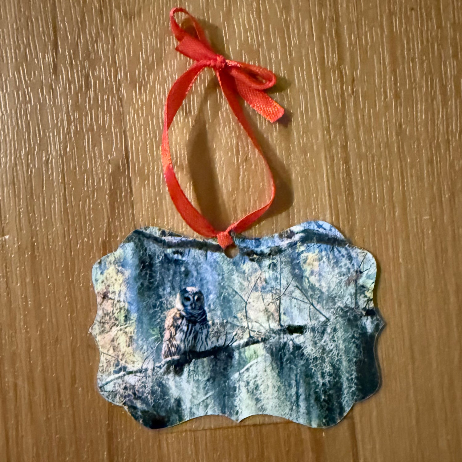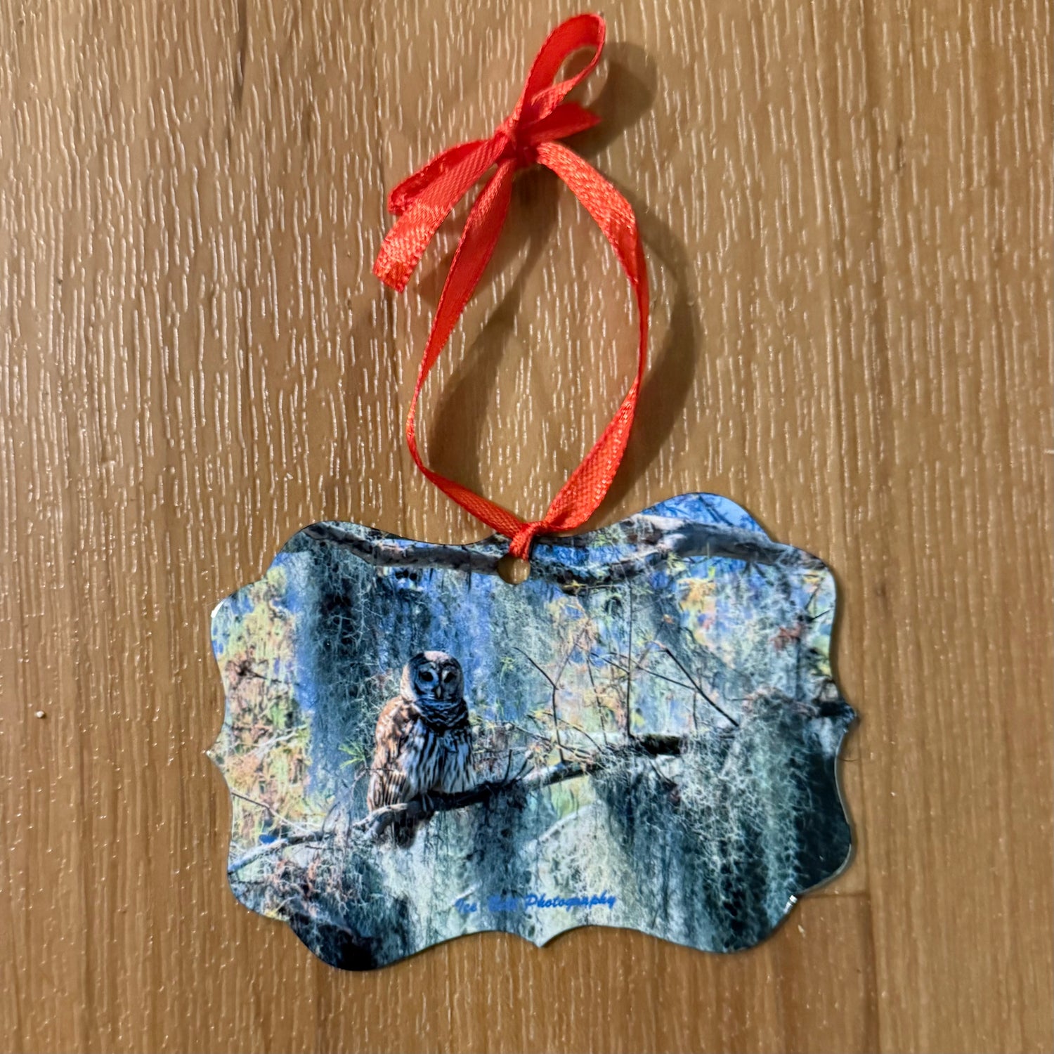 This evocative metal ornament immortalizes the barred owl amid the atmospheric landscape of Jean Lafitte's swamplands, complete with cascading Spanish moss. Ideal for collectors of regional wildlife art and Louisiana heritage enthusiasts, this piece captures the essence of bayou ecosystems with authentic detail. A refined keepsake that celebrates the natural character of the American South and makes a distinctive gift for nature lovers and travel memorabilia collectors.