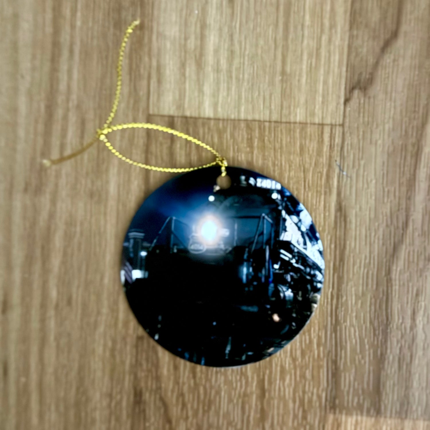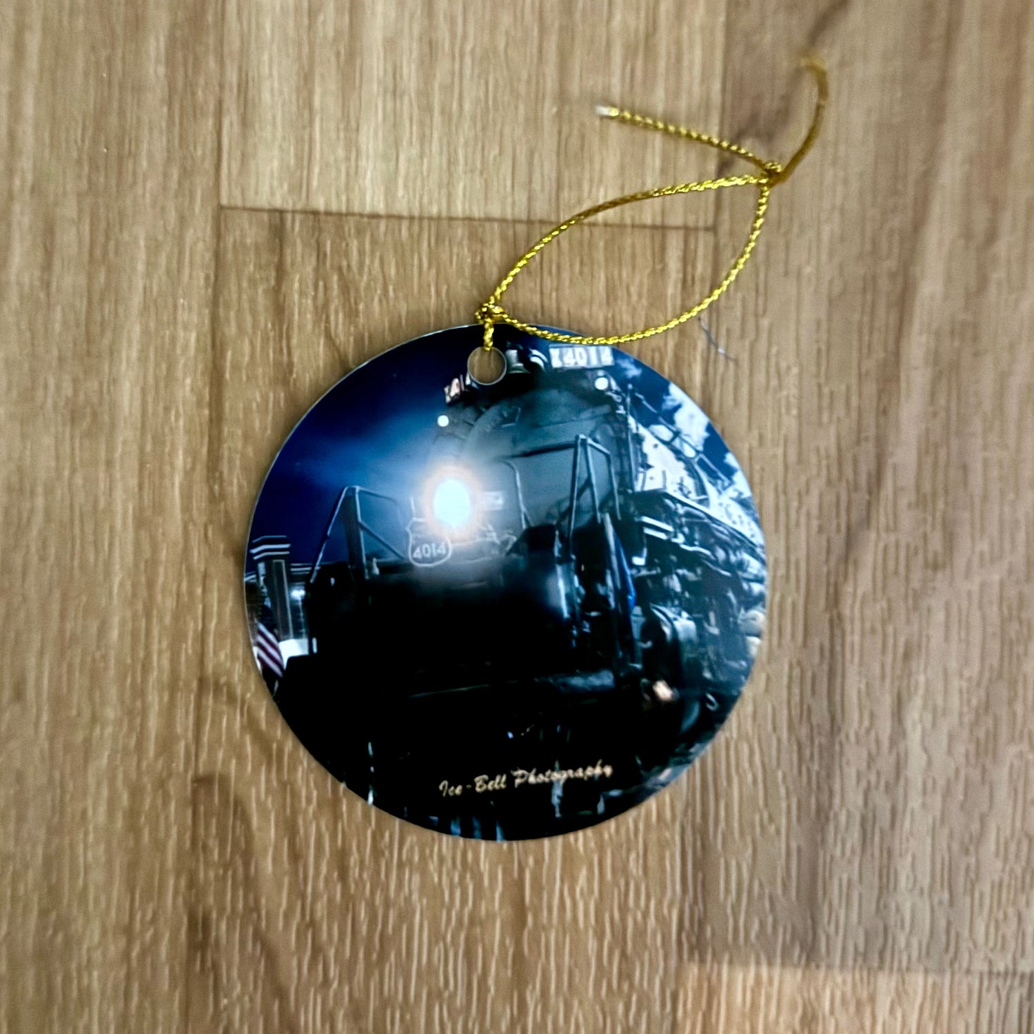 This beautiful scalloped circle metal ornament was made from one of my images as Big Boy 4014 sat overnight at Kansas City Union Station