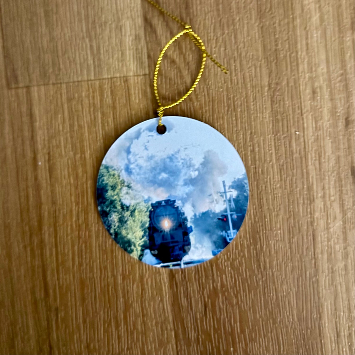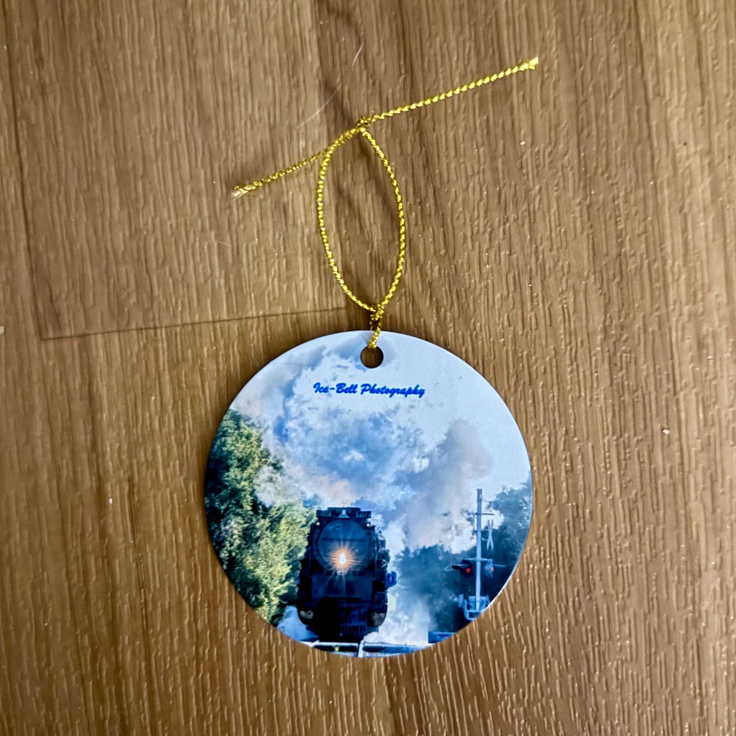 This beautiful scalloped circle metal ornament was made from one of my images as Big Boy 4014 left Coffeyville, KS in October 2024