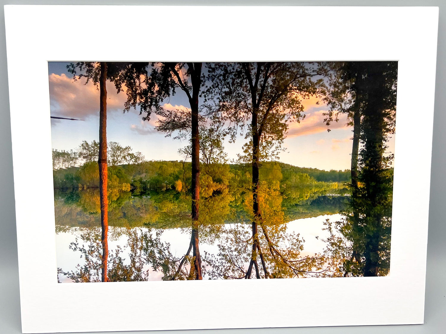 Experience peace amongst the flood water Matted Print. Featuring a serene view of Table Rock Lake flooded near Flat Creek, the smooth and reflective water will bring a sense of calm to any space. Take in the beauty of nature with this expertly matted print.
