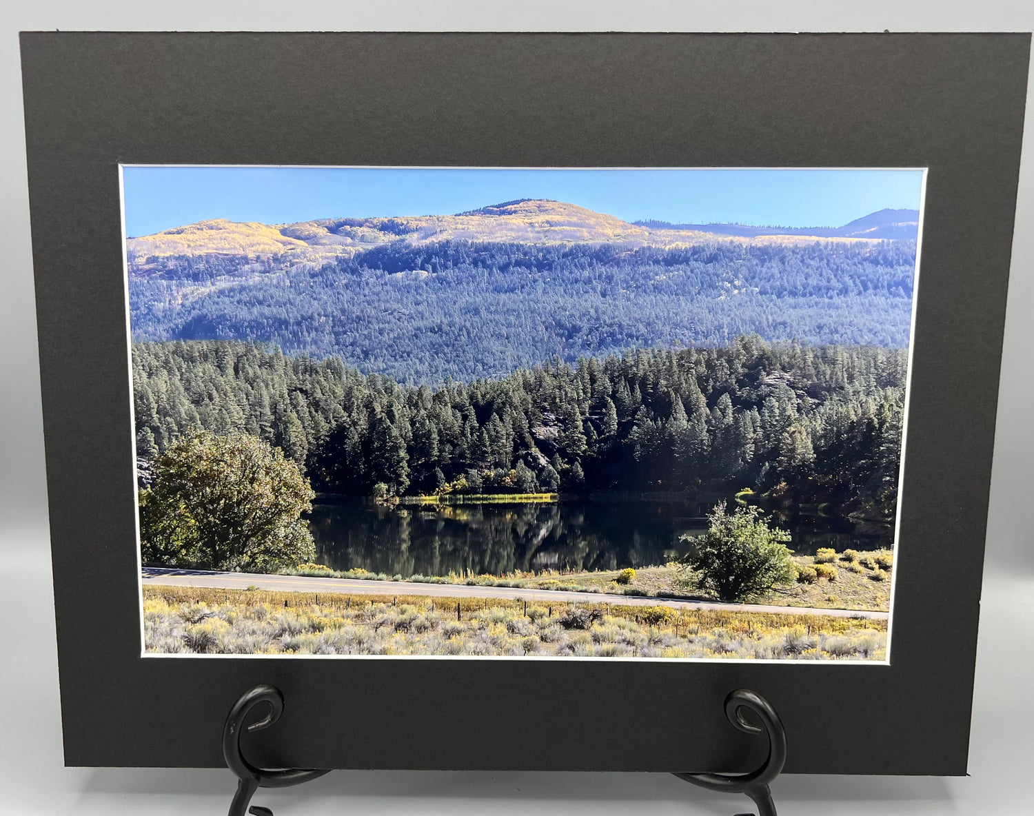 Relax and escape with this beautiful matted print. Created from a photograph of a Colorado drive, you'll enjoy the calming view of lakes and mountains. Enhance any room with this peaceful piece.