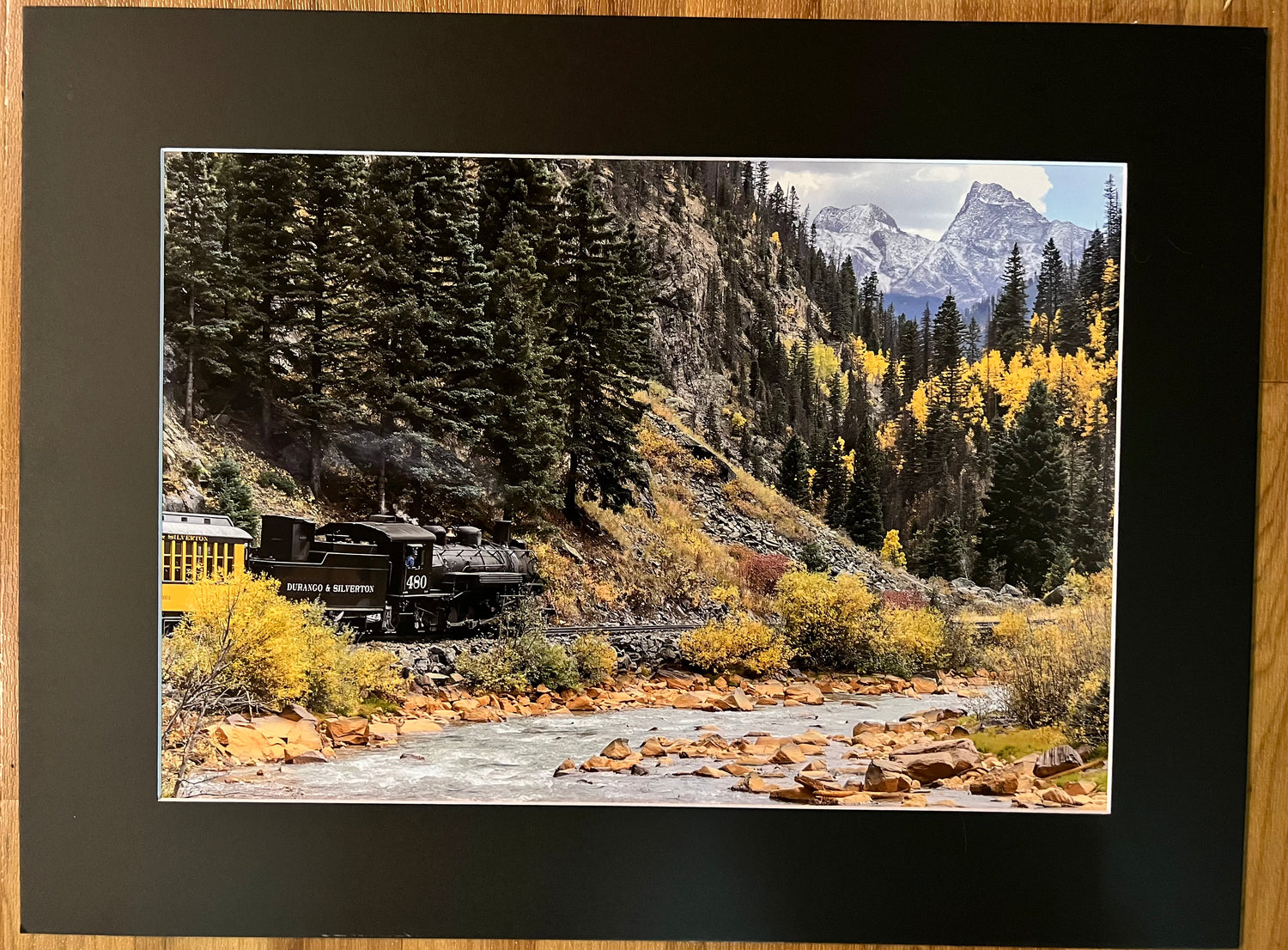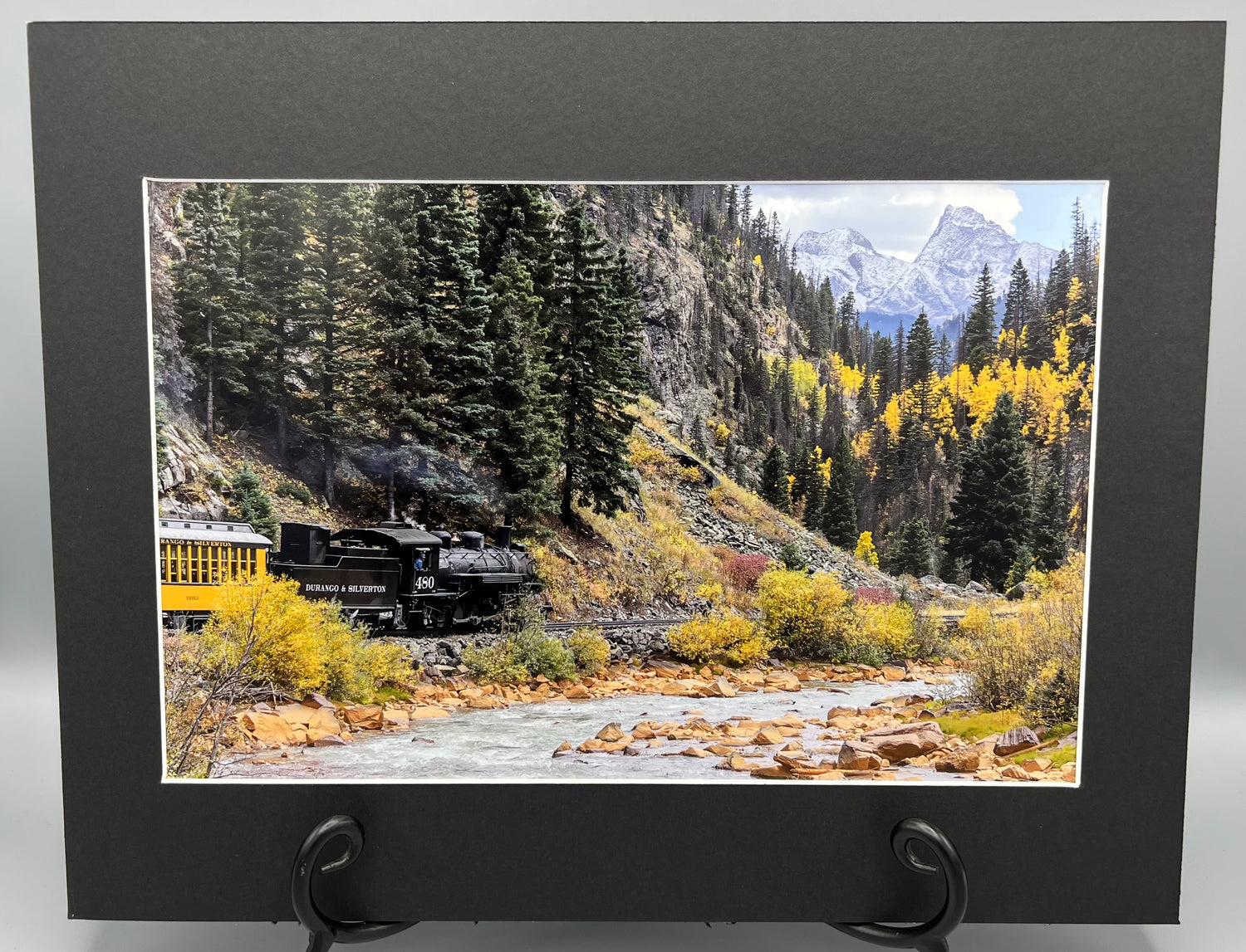 This matted print of the Durango & Silverton Train and the stunning Animas River comes alive with vibrant fall colors and majestic mountains for the perfect piece of wall art. Expertly printed on high-quality archival paper for lasting brilliance.