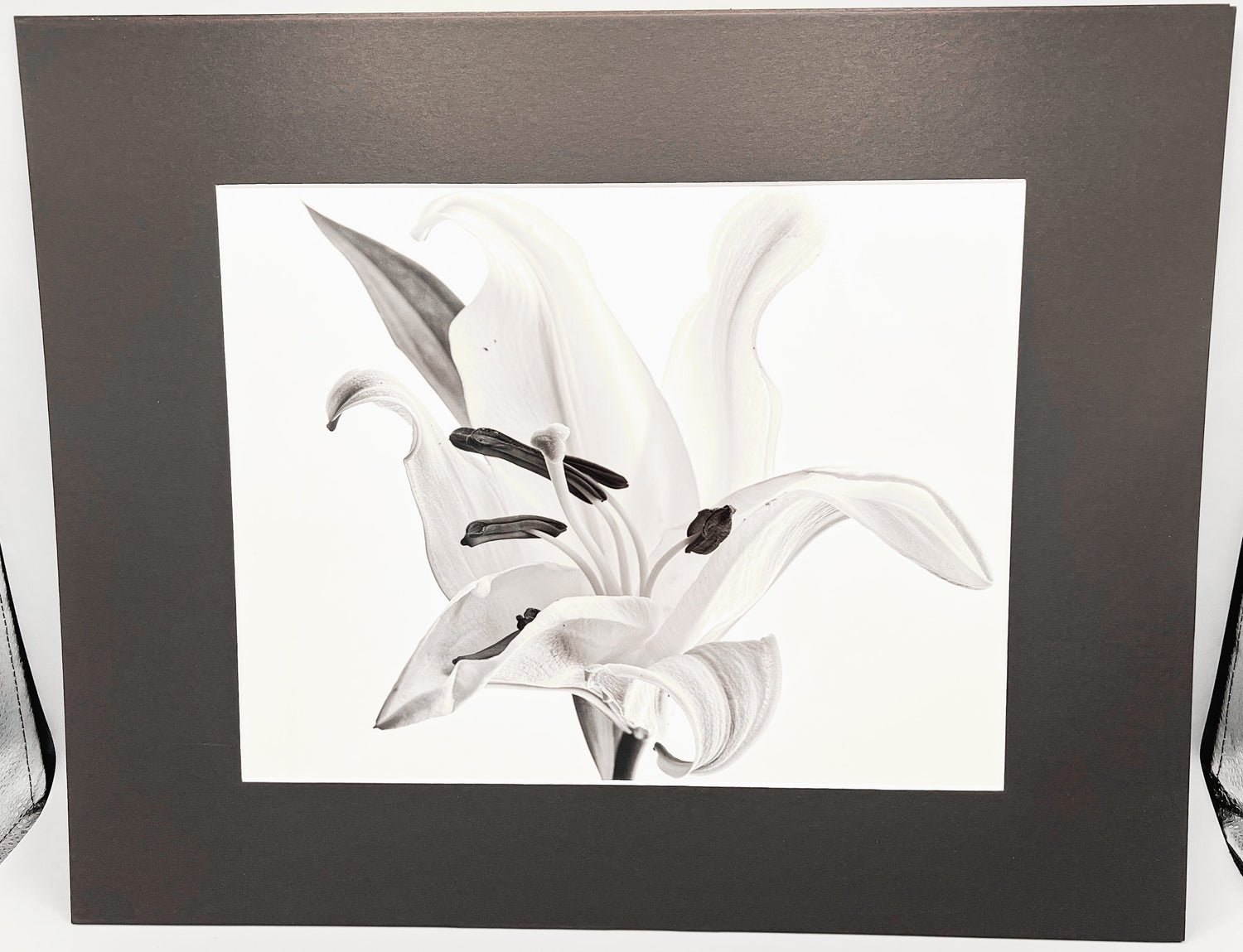 This Single Lily Matted Print features a stunning black and white image with a vivid visual effect. The acid-free matted paper adds a timeless and sophisticated look, making it the perfect choice for any art collection.
