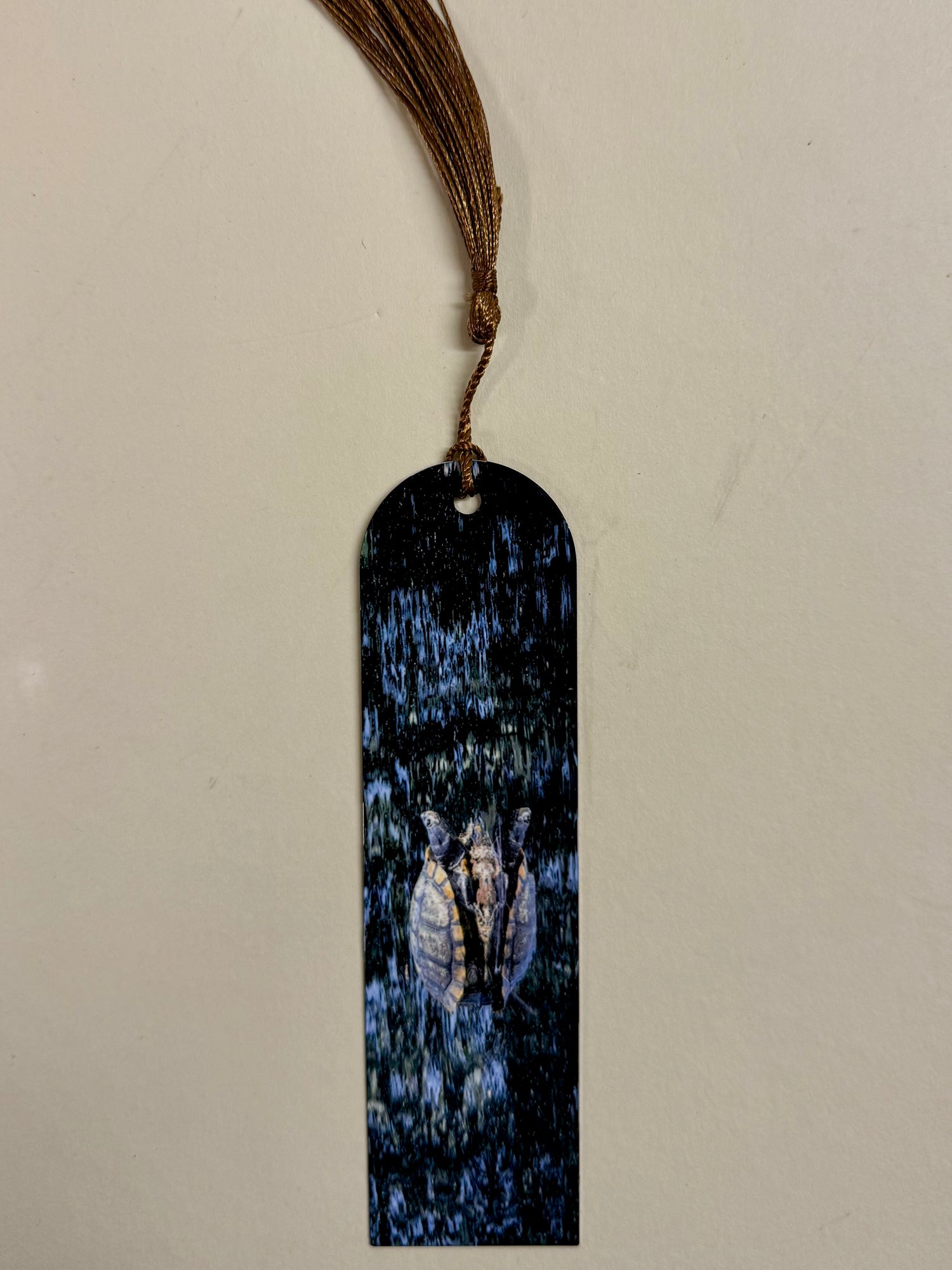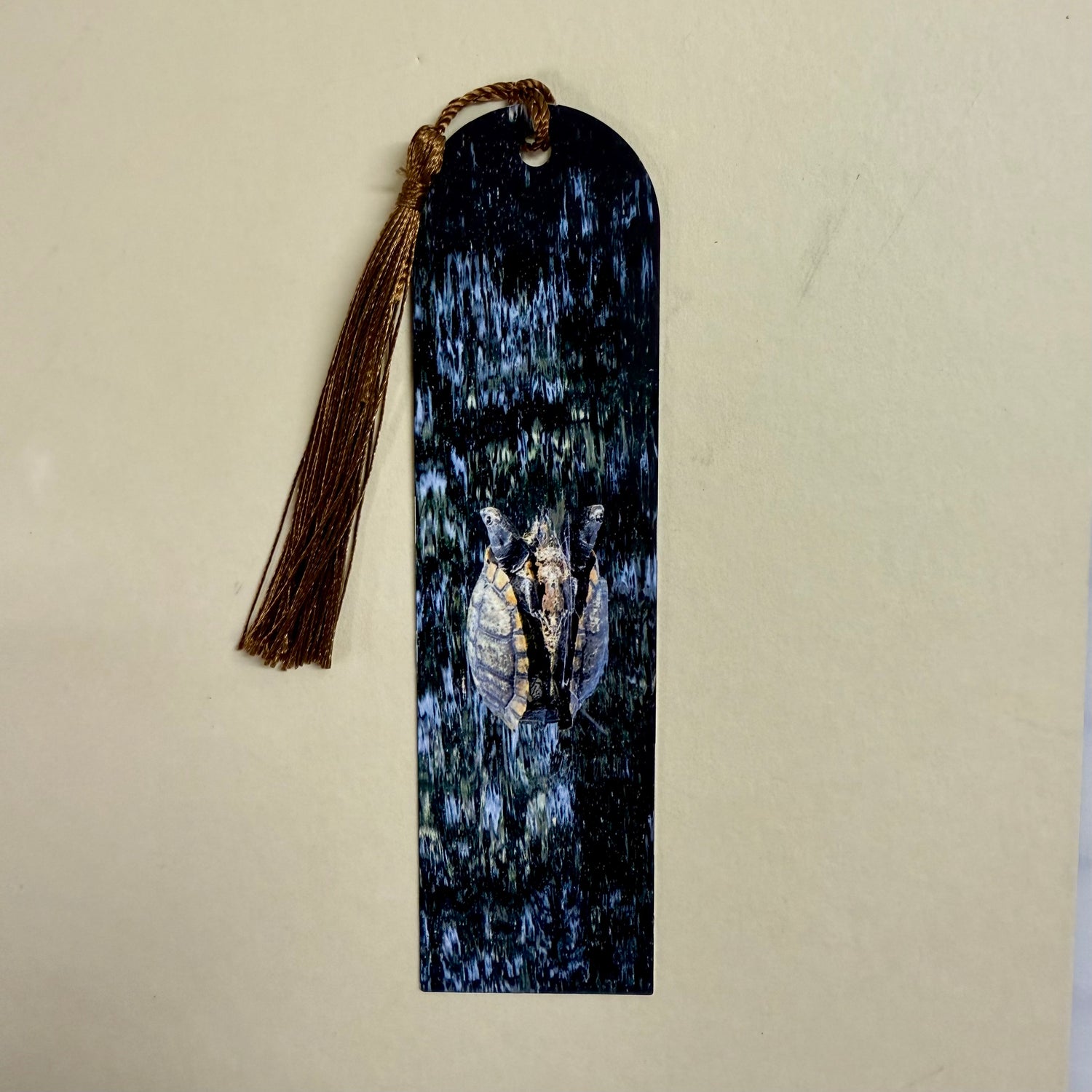 Enhance your reading experience with this stunning 5.8”x1.6” metal bookmark featuring a turtle. The perfect gift for any nature or book lover.